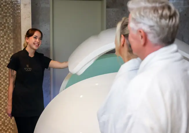 Complete your wellness experience by unwinding a little longer in our Swimmingpool & Sauna area! If you have booked a treatment at YUMI Spa & Wellness, you can enjoy access to our Pool & Sauna facilities for €12.50 per person. This area includes a swimming pool, sauna, Turkish steam bath, and ice shower. You can request access on the day of your treatment.