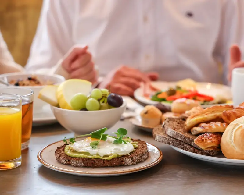 Laat u volledig ontzorgen en schuif zonder zorgen aan in ons restaurant of in de stijlvolle Vloed Loungebar. Onze keukenbrigade bereidt een rijk assortiment aan warme en koude gerechten, zodat er voor iedereen volop keuze is.